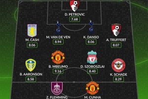 后衛(wèi):卡什(阿斯頓維拉,8.06分)、范德芬(熱刺,8.94分)、丹索(熱刺,8.06分)、阿德里安-特呂費爾(伯恩茅斯,8.07分)
