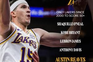 2000年后湖人隊(duì)史50+僅5人:奧尼爾、科比、詹姆斯、濃眉、里夫斯