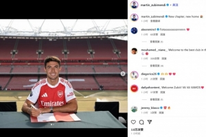 祖比門迪曬出自己身穿阿森納球衣在酋長球場的簽約照,并配文:“新的篇章,新的家?!?/p>