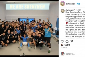 隨后,拉坦齊奧在社媒發(fā)文:“親愛的深圳新鵬城球迷們,我要由衷地感謝你們一直以來給予我的支持和厚愛!我永遠不會忘記你們,并祝愿你們一切都好??。