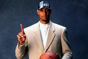 1997-98賽季,蒂姆-鄧肯作為新秀場均貢獻(xiàn)21.1分、11.9個籃板、2.7次助攻和2.5次蓋帽,投籃命中率達(dá)到54.9%,包攬最佳新秀+最佳陣容一陣+全明星。
