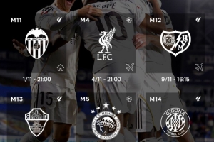 體育資訊10月30日訊 11月即將到來,皇馬官方曬出了球隊賽程。除了11月1日主場迎戰(zhàn)瓦倫西亞外,西甲豪門將迎來5連客,其中包括前往安菲爾德挑戰(zhàn)利物浦。