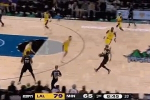 GIF-蘭德爾強(qiáng)突上籃被吹進(jìn)攻犯規(guī),森林狼挑戰(zhàn)成功變2+1