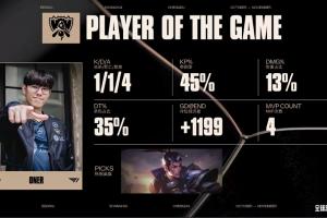 體育資訊11月2日訊 S15四強賽T1首局擊敗TES,Oner憑借趙信在對局里的完美表現(xiàn)斬獲MVP!