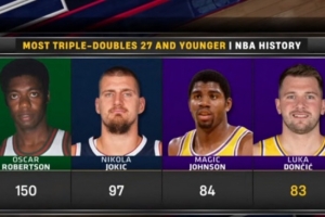 據(jù)統(tǒng)計,東契奇未超27歲(目前26歲254天)已經(jīng)83次砍下三雙,NBA歷史第4,僅次于奧斯卡-羅伯特森(150次)、約基奇(97次)、魔術(shù)師(84次)。