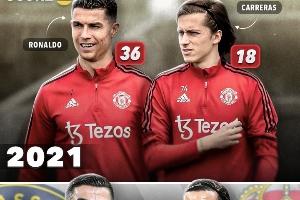 2021年,C羅、卡雷拉斯一同效力曼聯(lián)