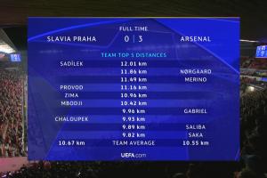 以下為阿森納球員本場(chǎng)跑動(dòng)數(shù)據(jù)榜: