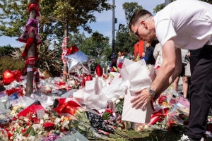 羅伯遜手捧一束鮮花,前往安菲爾德球場悼念若塔。利物浦社媒寫道:手捧鮮花,羅伯遜前往安菲爾德球場悼念若塔兄弟??