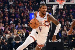 杰倫·格林本場迎來太陽首秀,他首發(fā)出戰(zhàn)13分鐘,13投6中,三分9中4,罰球2中0,得到16分2籃板2助攻1搶斷,正負(fù)值+7全隊最高。