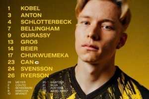 1-科貝爾,3-安東,4-施洛特貝克,7-小貝林厄姆,9-吉拉西,13-格羅斯,14-拜爾,17-丘庫埃梅卡,23-埃姆雷-詹,24-斯文松,26-萊爾森