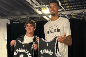 本場比賽,德克薩斯大學(xué)橄欖球隊(duì)球員阿奇·曼寧等人現(xiàn)場觀看了本場比賽,并受到了文班亞馬及??怂沟慕哟?。星三代阿奇·曼寧還和文班互換了球衣。