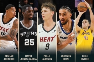 入選最佳陣容的5名球員分別是凱沙德-約翰遜(熱火)、大衛(wèi)-瓊斯-加西亞(馬刺)、佩勒-拉松(熱火)、杰克遜-羅(勇士)、科爾-斯威德(湖人)。5名球員里,佩勒-拉松是去年的44號秀,其他4人都是落選秀。