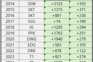 體育資訊11月10日訊 昨日S15全球總決賽上,T1擊敗KT奪得冠軍,賽后韓網(wǎng)整理歷年S賽冠軍的前15分經(jīng)濟差,其中今年T1是唯一一支負15分經(jīng)濟差奪冠的隊伍!