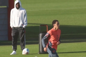 值得一提的是,好友阿方索·戴維斯(25歲/7個(gè)半月前右膝十字韌帶撕裂)在訓(xùn)練課開始后不久便身著休閑服來(lái)到訓(xùn)練場(chǎng)。這位加拿大國(guó)腳隨著穆西亞拉用手機(jī)連放的XXL音響中說(shuō)唱樂(lè)節(jié)奏舞動(dòng),并為正在進(jìn)行恢復(fù)訓(xùn)練的伙伴歡呼助威。這位左后衛(wèi)情緒高漲,強(qiáng)勁的節(jié)拍響徹拜仁訓(xùn)練基地。