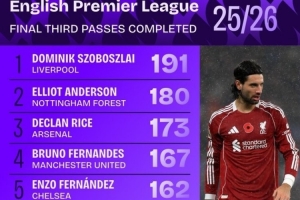 體育資訊11月11日訊 英超聯(lián)賽已經進行了11輪,squakwa也統(tǒng)計了本賽季英超進攻三區(qū)的成功傳球榜,索博斯洛伊居首。