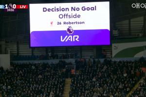 曼城3-0利物浦比賽的第38分鐘,范戴克頭球破門,但VAR判定羅伯遜越位位置干擾,進(jìn)球被判無效。