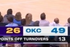 截至發(fā)稿,雷霆領先湖人23分,其中利用失誤得分高達13分,而湖人則掛零。
