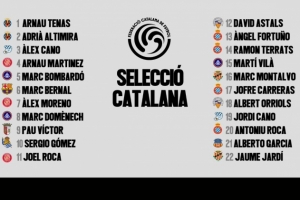 1-特納斯(比利亞雷亞爾)、2-阿爾蒂米拉(比利亞雷亞爾)、3-亞歷克斯·卡諾(CE歐羅巴)、4-阿爾瑙·馬丁內(nèi)斯(赫羅納)、5-邦巴(安道爾FC)、6-伯納爾(巴薩)、7-亞歷克斯·莫雷諾(赫羅納)、8-馬克·多梅內(nèi)克(安道爾FC)、9-?!ぞS克托(布拉加)、10-塞爾吉奧·戈麥斯(皇家社會)、11-喬爾·羅卡(赫羅納)、12-阿斯塔爾斯(薩瓦德爾體育)、13-福圖尼奧(西班牙人)、14-特拉茨(西班牙人)、15-馬蒂·維拉(安道爾FC)、16-蒙塔爾沃(塔拉戈納體操)、17-喬弗雷·卡雷拉斯(西班牙人)、18-奧里爾斯(薩瓦德爾體育)、19-喬迪·卡諾(CE歐羅巴)、20-安東尼奧·羅卡(西班牙人)、21-阿爾伯托·加西亞(圣安德魯聯(lián)盟)、22-雅爾迪(塔拉戈納體操)