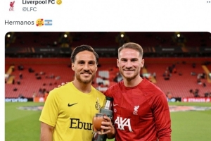 利物浦中場亞歷克西斯·麥卡利斯特和他的哥哥凱文·麥卡利斯特(圣吉羅斯后衛(wèi))都入選了本期阿根廷隊,利物浦官方社媒曬出麥卡兄弟的合照,配文:“兄弟。”