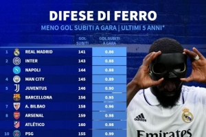 體育資訊11月15日訊 德國(guó)轉(zhuǎn)會(huì)市場(chǎng)統(tǒng)計(jì)了2020-2021賽季以來球隊(duì)在五大聯(lián)賽中的場(chǎng)均失球,并列出場(chǎng)均失球最少榜單,皇馬0.86球居首,國(guó)米、那不勒斯前三。