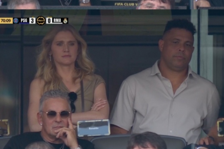 轉(zhuǎn)播鏡頭給到看臺,今天來觀戰(zhàn)的大羅表情有點無奈。