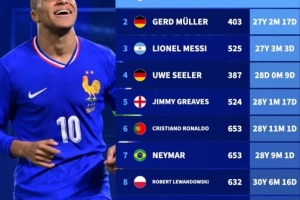 體育資訊11月15日訊 對陣烏克蘭的世預賽,法國球星姆巴佩達成職業(yè)生涯400球里程碑。德國轉(zhuǎn)會市場盤點了職業(yè)生涯400球俱樂部球員達成如此成就的場次和年齡,姆巴佩以26歲10個月24天成最年輕球員。
