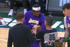 體育資訊11月16日訊 湖人客場119-95大勝雄鹿,比賽結束后發(fā)生了戲劇性的一幕。
