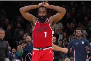 GIF-哈登壓哨出手險(xiǎn)些絕平!