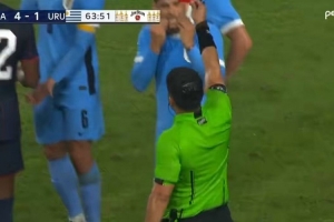 此役第64分鐘,本坦庫爾鏟到對方球員腳踝,被裁判直接出示紅牌罰下,目前烏拉圭1-5落后于美國。