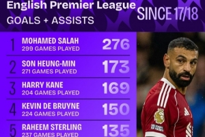 體育資訊11月19日訊 數(shù)據(jù)機構(gòu)squakwa統(tǒng)計了17-18賽季以來的英超直接參與進球榜,薩拉赫斷崖領(lǐng)跑。
