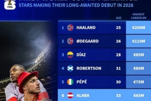 體育資訊11月20日訊 世界杯預(yù)選賽僅剩6個(gè)附加賽名額待定,多支國(guó)家隊(duì)實(shí)現(xiàn)了晉級(jí)夢(mèng)想,《轉(zhuǎn)會(huì)市場(chǎng)》也列出了多位已經(jīng)為世界杯首秀等待多年的名將。