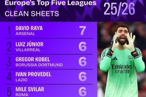 體育資訊11月21日訊 五大聯(lián)賽戰(zhàn)火即將重燃,數(shù)據(jù)機(jī)構(gòu)squakwa也統(tǒng)計(jì)了本賽季五大聯(lián)賽門將零封場(chǎng)次榜,槍手門將拉亞居首。