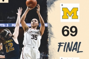 體育資訊11月22日訊 NCAA常規(guī)賽,康涅狄克大學女籃72-69險勝密歇根大學。