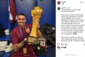 上海海港前鋒萊昂納多在社媒寫道:“我該如何形容今天?是激動?還是成就?