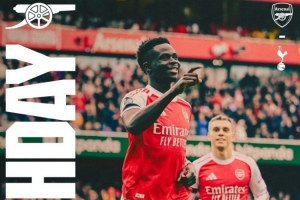 阿森納官方社媒曬出北倫敦德比海報,薩卡、特羅薩德出鏡。