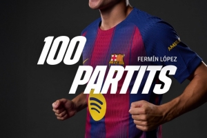 此役是費(fèi)爾明的諾坎普首秀,也是他為巴薩出戰(zhàn)的第100場(chǎng)比賽,巴薩官方社媒曬出海報(bào),祝賀他達(dá)成巴薩百場(chǎng)里程碑。