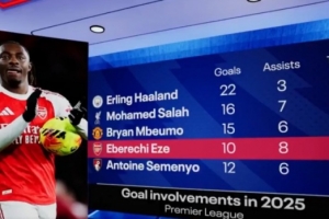據(jù)BBC統(tǒng)計(jì),埃澤今年英超參與18粒進(jìn)球,僅少于哈蘭德、薩拉赫、姆伯莫。