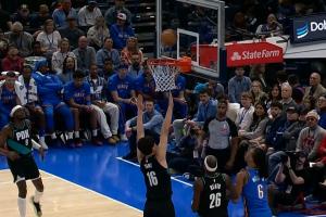 NBA生涯首個三分!楊瀚森迎著哈滕三分轟進 此前6中0!