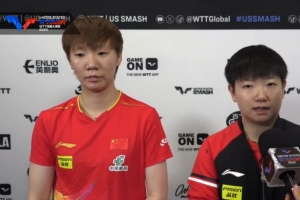 孫穎莎:這也是我們第一次交手,今天主要上來跟曼昱調(diào)動比以前好,我們之前的單打失利了,面對女雙我們還能保持這么積極,全力以赴去拼下每一分。