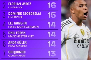 體育資訊11月27日訊 本賽季歐冠5輪戰(zhàn)罷,數(shù)據(jù)網(wǎng)站Squawka盤點(diǎn)了本賽季歐冠創(chuàng)造機(jī)會榜,具體如下: