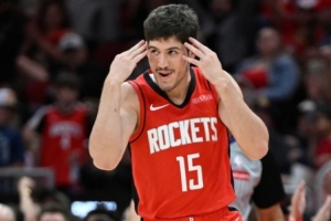 在本賽季的大部分時(shí)間里,火箭隊(duì)并沒有讓謝潑德像范弗里特那樣去扛起后場(chǎng)核心的重?fù)?dān),而是讓申京和杜蘭特這兩個(gè)非后場(chǎng)核心去主導(dǎo)進(jìn)攻,運(yùn)球過半場(chǎng)也經(jīng)常讓阿門代勞。謝潑德僅以一個(gè)定點(diǎn)射手的角色去參與其中。