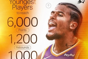 歷史最年輕的6000分+1200籃板+1000助攻的球員前八:詹姆斯、愛德華茲、科比、麥迪、東契奇、杰倫-格林、字母哥、布克。