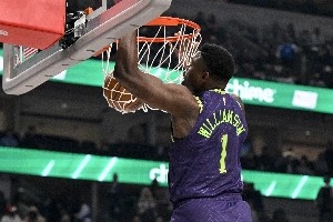 19年7月5日,鵜鶘對陣尼克斯,錫安出戰(zhàn)9分鐘,9投4中得到11分3籃板。第二節(jié)比賽中錫安撞傷了膝蓋,鵜鶘謹(jǐn)慎起見下半場沒有再讓他上場。