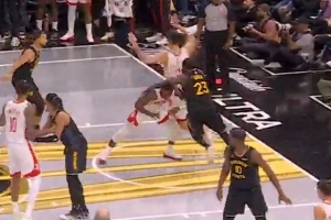 漏判2:比賽最后1分28秒,勇士91-95落后4分,勇士新秀理查德在籃下防守時(shí),向前移動(dòng)并與阿門下半身發(fā)生主動(dòng)接觸,此為犯規(guī)漏吹。阿門本應(yīng)該獲得加罰機(jī)會。