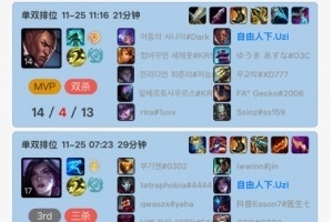 體育資訊11月29日訊 根據(jù)排位統(tǒng)計小程序顯示,Uzi在25日之后就未登上韓服賬號。