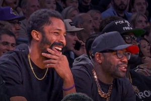 本場(chǎng)比賽,效力過湖人和獨(dú)行俠的丁威迪出現(xiàn)在了場(chǎng)邊觀眾席。而坐在丁威迪旁邊的則是知名拳王梅威瑟。