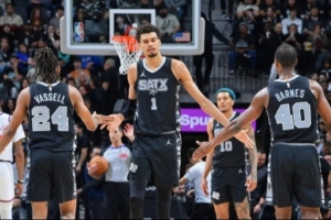 要聊這支馬刺,你永遠(yuǎn)繞不開(kāi)文班亞馬,就像聊三分球繞不開(kāi)庫(kù)里一樣。經(jīng)過(guò)兩年進(jìn)化和少林特訓(xùn),22歲的文班已顯現(xiàn)出超巨之姿,場(chǎng)均26分12籃板4助攻3.6蓋帽,真實(shí)命中率61%。開(kāi)賽前五場(chǎng)更是轟出了30分15籃板5蓋帽的場(chǎng)均數(shù)據(jù),帶領(lǐng)馬刺豪取五連勝,把仗著內(nèi)線深度試圖單防文班的獨(dú)行俠打出33分分差,讓所有球隊(duì)都不敢單防。