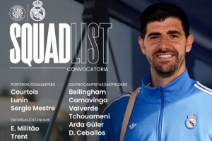 體育資訊11月30日訊 北京時(shí)間12月1日凌晨4:00,2025-26賽季西甲聯(lián)賽第14輪,皇馬將客戰(zhàn)赫羅納。賽前,皇馬官方公布球隊(duì)大名單,庫爾圖瓦、呂迪格和馬斯坦托諾回歸,勞爾·阿森西奧、赫伊森、卡瓦哈爾和阿拉巴缺席。
