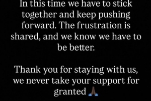 中場帕佩·薩爾在賽后通過社媒發(fā)文向球迷們致歉:“在這段時(shí)期,我們必須團(tuán)結(jié)一致,繼續(xù)前進(jìn)。我們同樣感到沮喪,并且深知我們必須做得更好。”