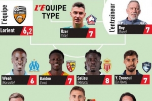 體育資訊12月1日訊 法甲第14輪戰(zhàn)罷,法媒隊(duì)報(bào)評(píng)本輪聯(lián)賽最佳陣,托萬(wàn)、維阿、托利索在列。